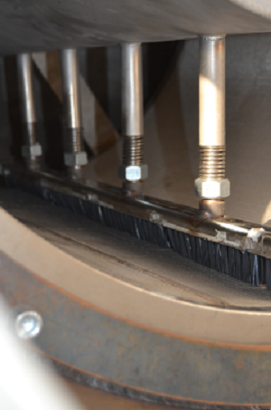 液體從過濾器進口流入,自上向下流動,透過濾網表面流向出口;當濾網表面收集到一定量的雜質時,電機驅動裝配有校正器的刮刀緊貼濾網表面轉動,刮除雜質,雜質隨下行液體聚集在收集室,當累積到一定量雜質時,自動排污閥打開收集室將含高濃度雜質的液體排出,排出殘液可回收或排放。